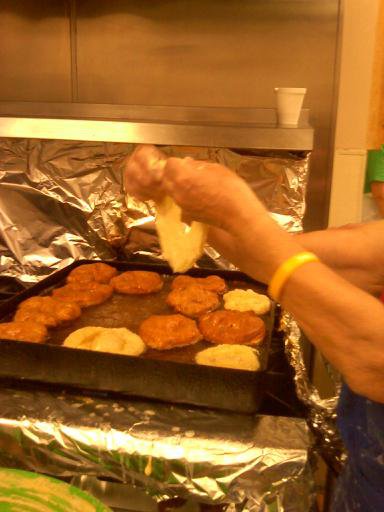 | my avo stretching dough by hand and dropping them into a pan of oil... |